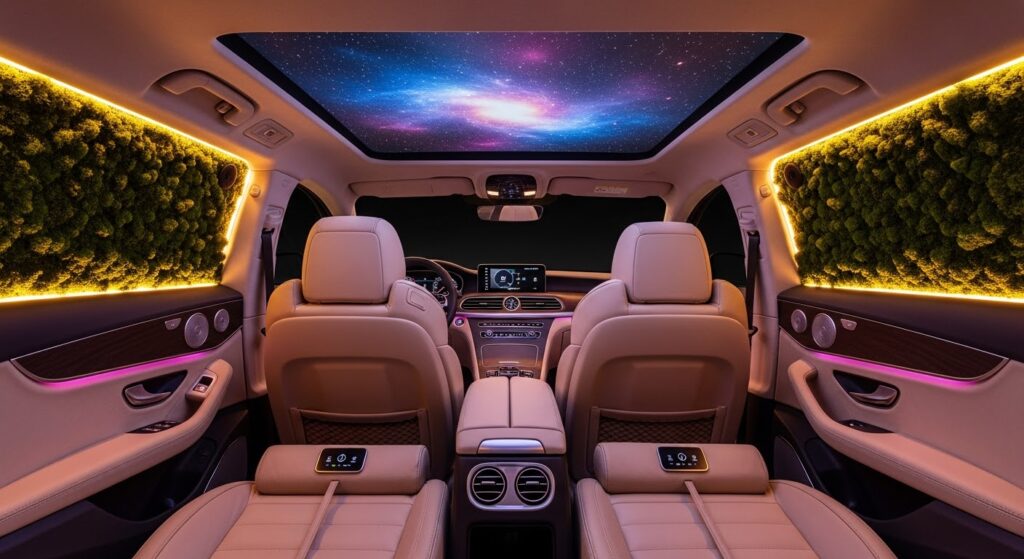 - Digital surfaces everywhere: Dashboards, door panels, even seat backs may display information or artwork. Ambient LEDs integrated with VR/AR overlays.